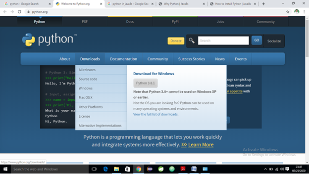 Then you click on red identified link, python will be downloaded and after downloading you install python.